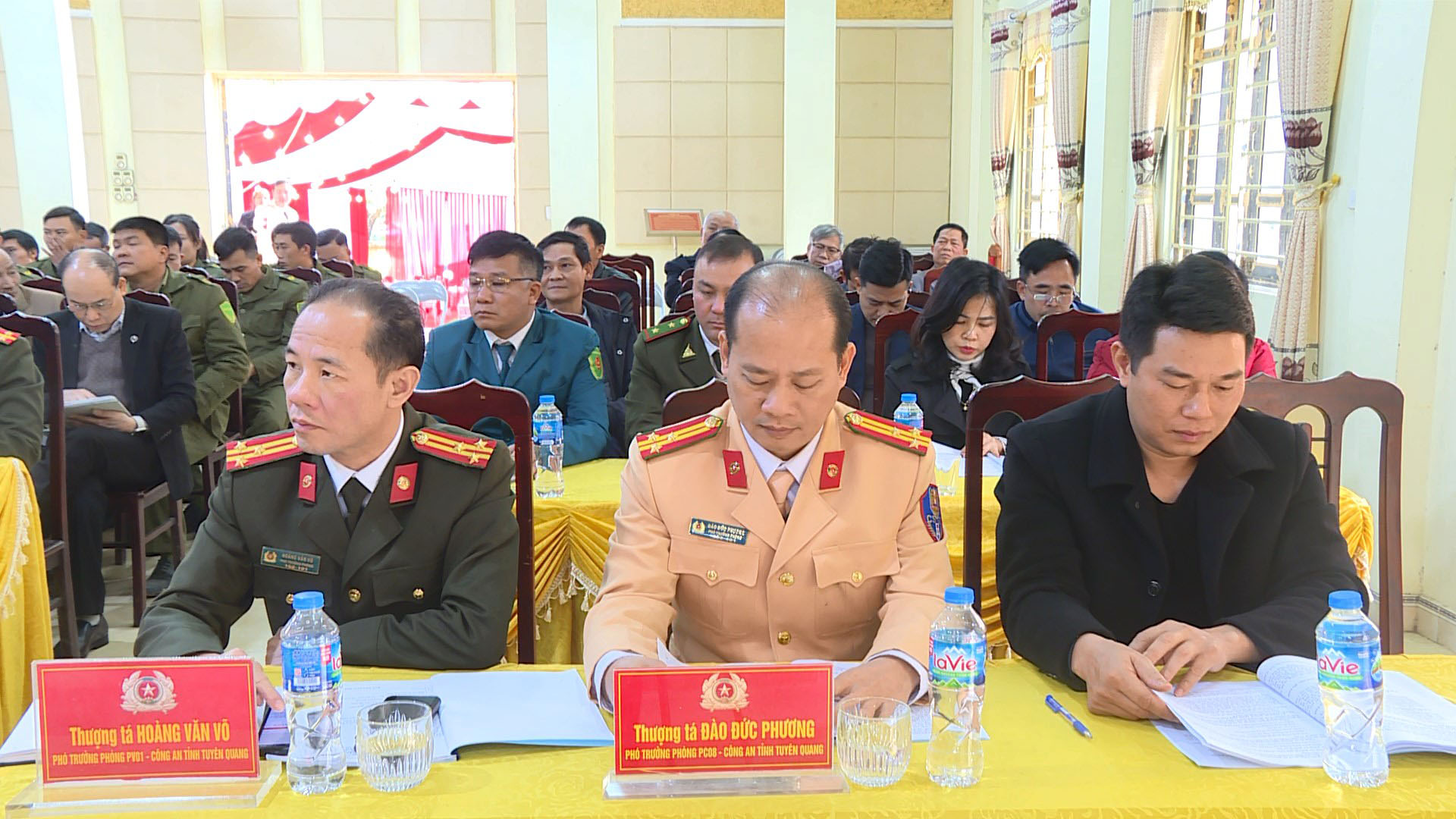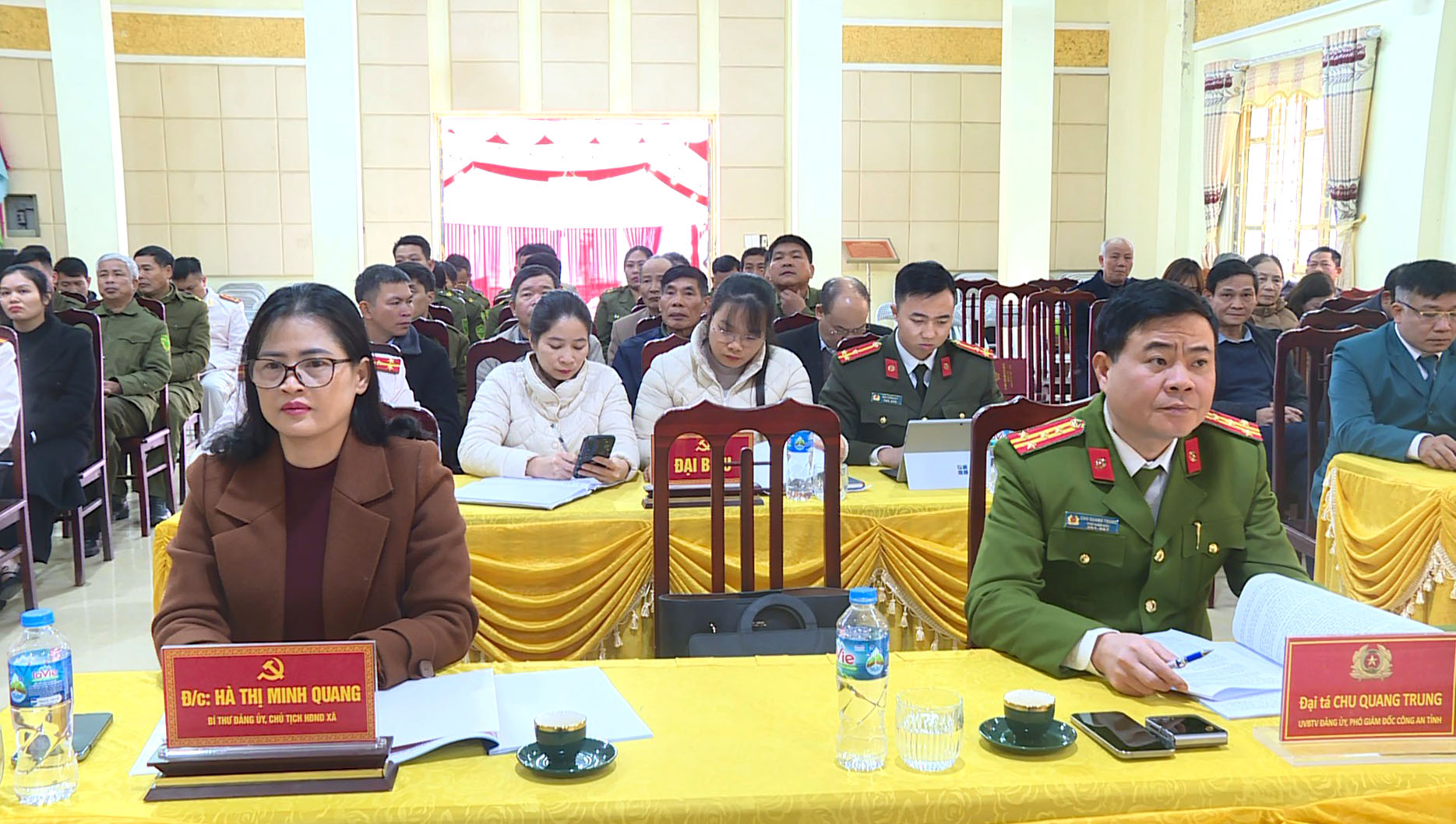 Đến dự và chỉ đạo hội nghị có các đồng chí: Đại tá Chu Quang Trung, Ủy viên ban thường vụ Đảng ủy, Phó Giám đốc Công an tỉnh; Hà Thị Minh Quang, Bí thư Đảng ủy, Chủ tịch HĐND xã; đại diện lãnh đạo các Phòng nghiệp vụ Công an tỉnh; các đồng chí Uỷ viên BTV Đảng ủy, lãnh đạo các phòng, ban xã, các Trường học, Trạm Y tế, doanh nghiệp, Trưởng thôn, đại diện 29 Tổ bảo vệ an ninh trật tự ở các thôn trên địa bàn.