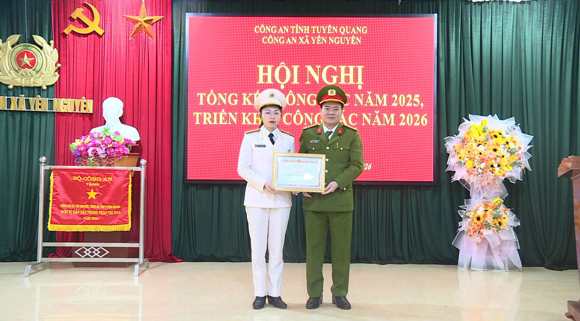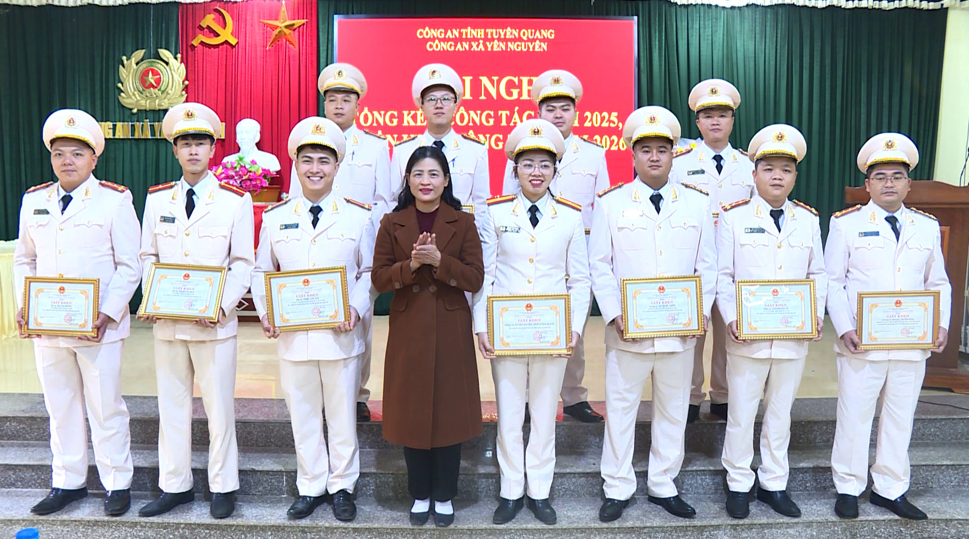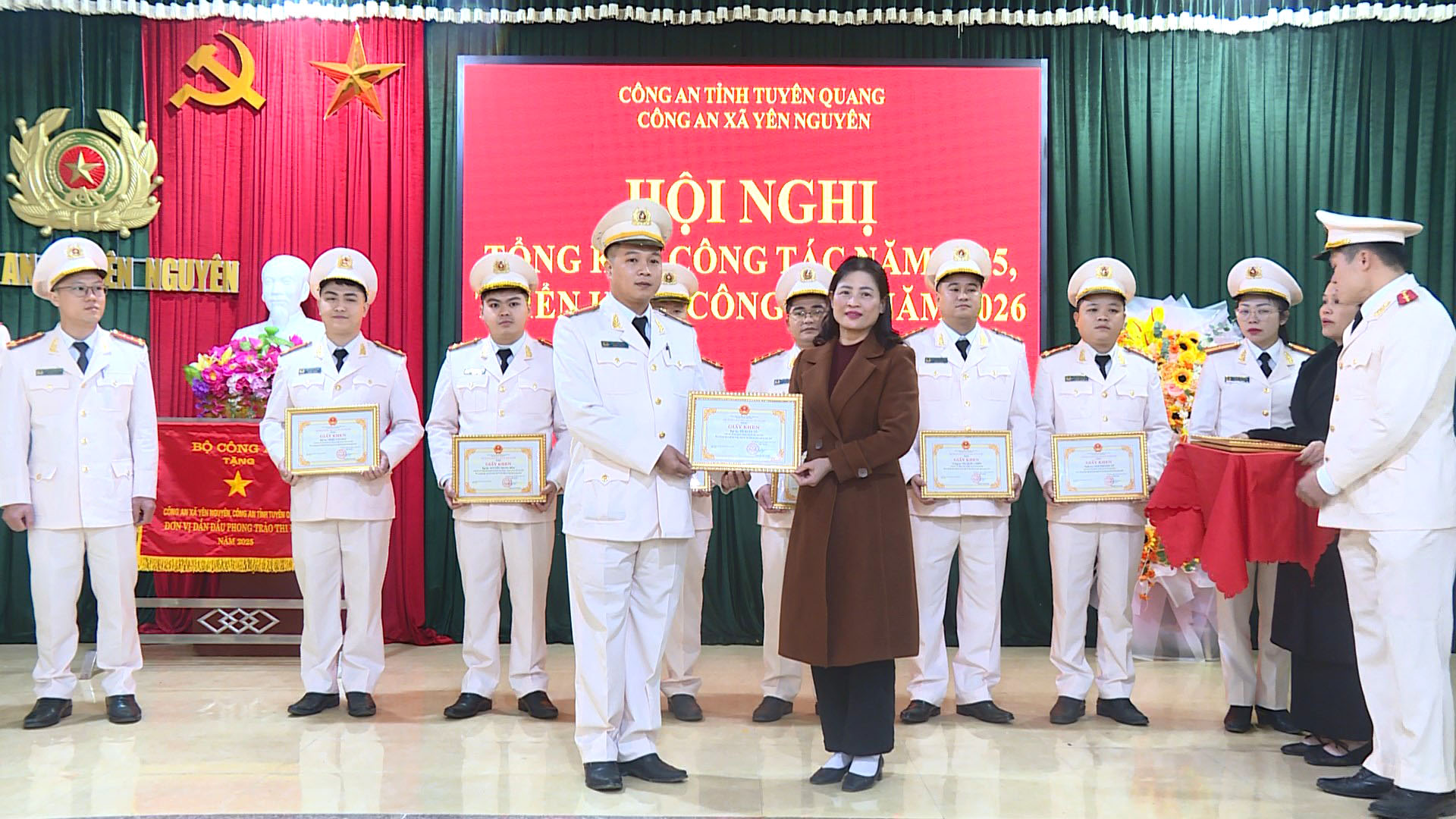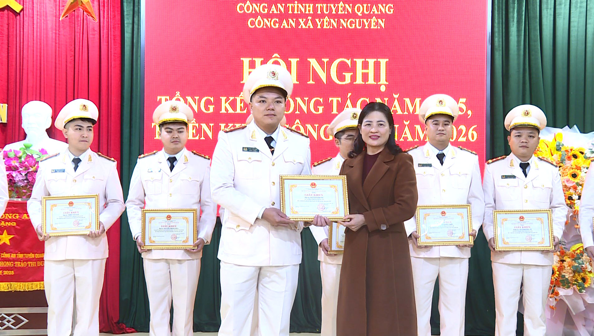 Nhân dịp này, hội nghị đã tổ chức biểu dương khen thưởng các tập thể, cá nhân có thành tích xuất sắc trong công tác bảo đảm an ninh, trật tự năm 2025.