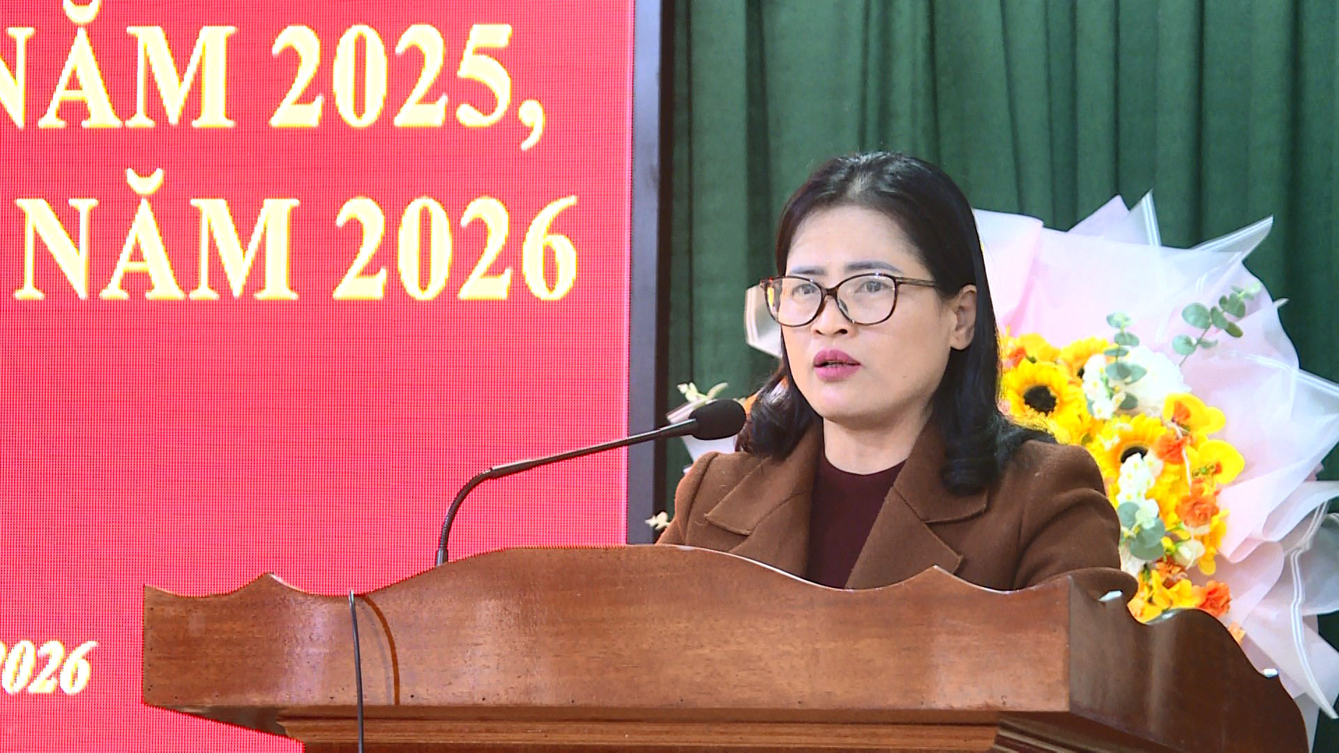 Đồng chí Hà Thị Minh Quang, Bí thư Đảng ủy, Chủ tịch HĐND xã phát biểu tại hội nghị.