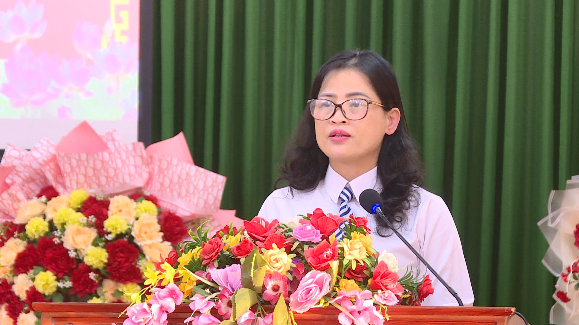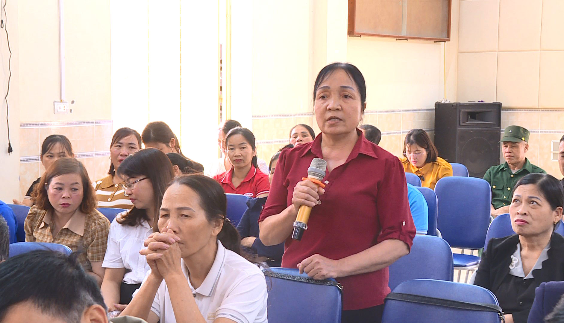 Đồng chí Hà Thị Minh Quang, Bí thư Đảng uỷ, Chủ tịch HĐND xã phát biểu chỉ đạo tại hội nghị.