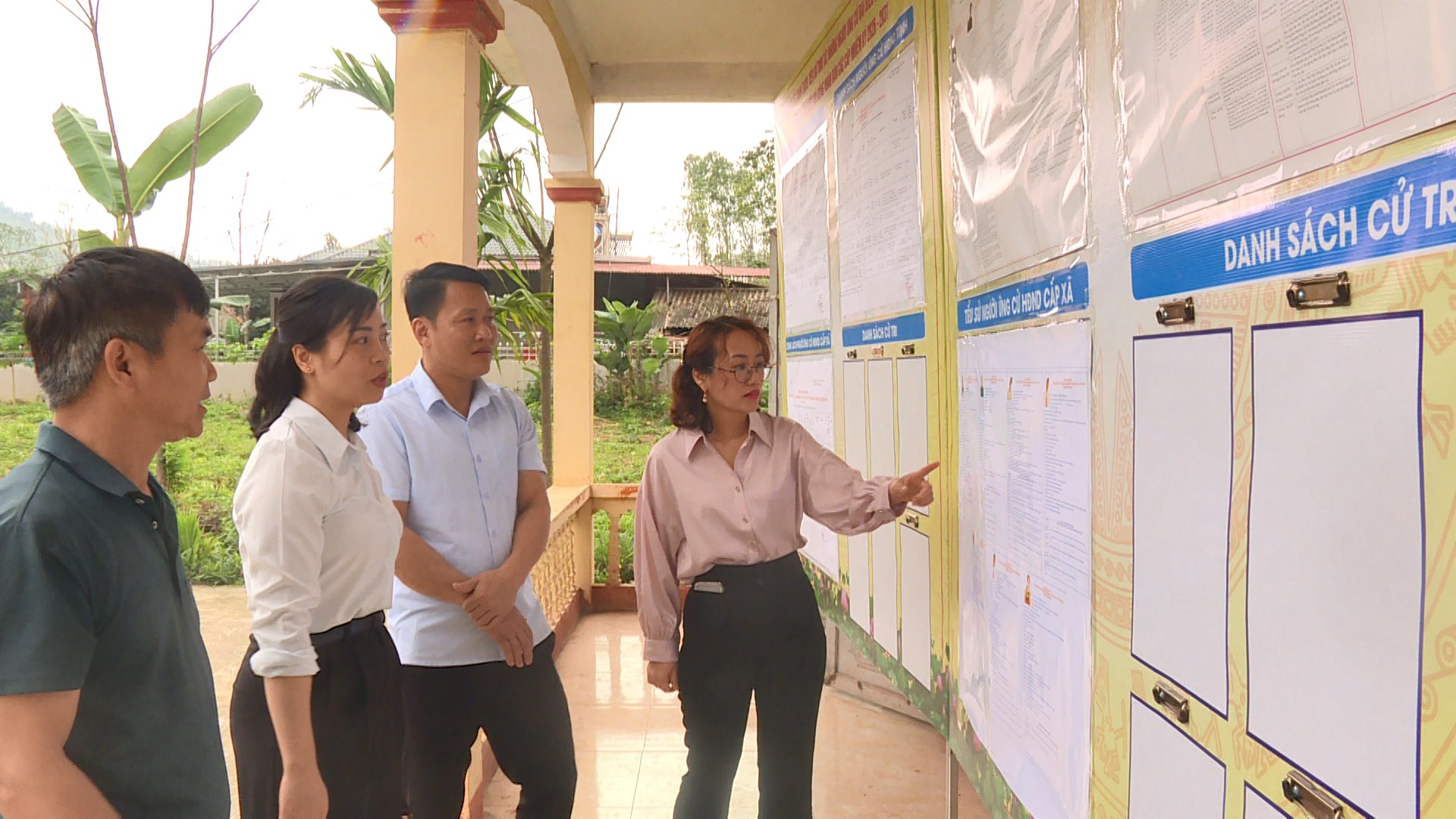 Đoàn công tác đã đến kiểm tra trực tiếp tại các điểm bầu cử đặt tại Nhà văn hóa các thôn; kiểm tra công tác trang trí khánh tiết, niêm yết danh sách cử tri, bố trí cơ sở hạ tầng, trang thiết bị phục vụ bầu cử, đồng thời rà soát các điều kiện bảo đảm an ninh trật tự, vệ sinh môi trường và công tác hậu cần theo đúng quy định.
