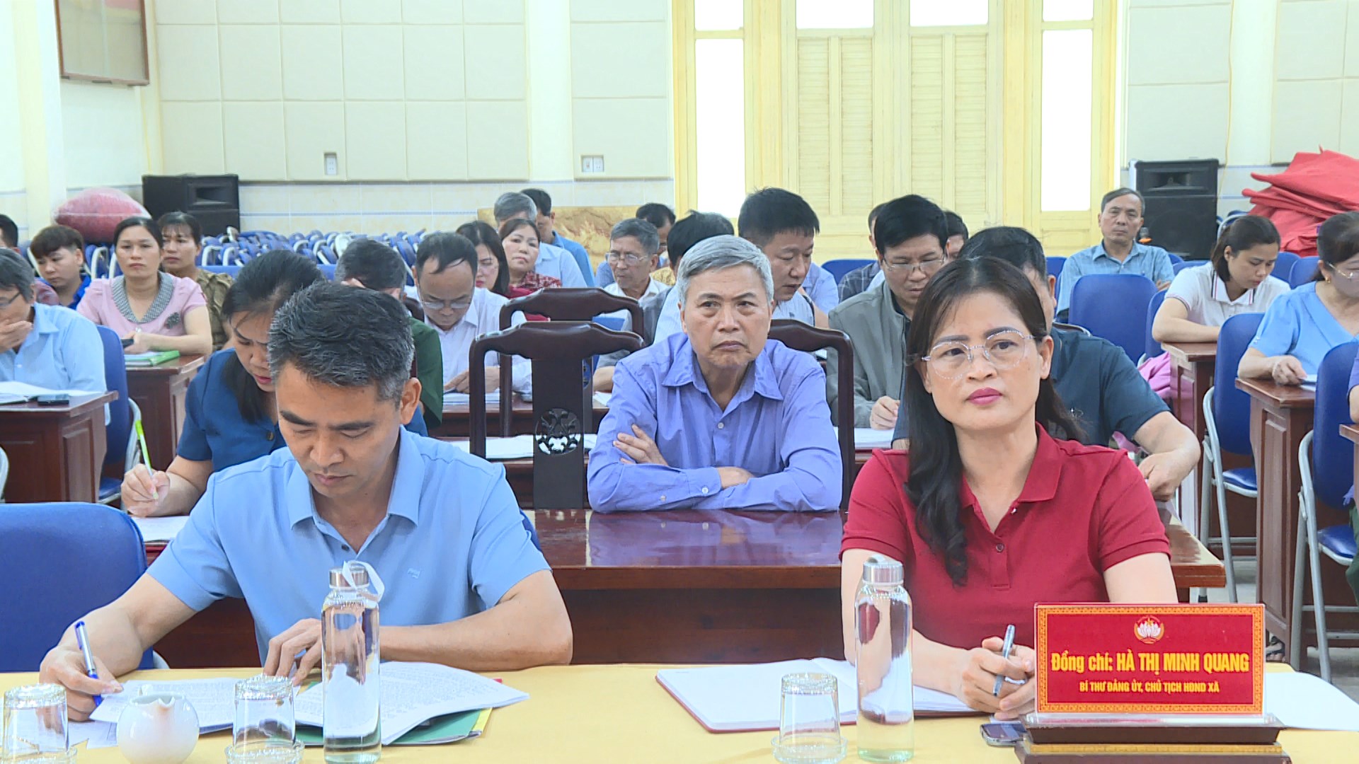 Dự hội nghị có đồng chí Hà Thị Minh Quang, Bí thư Đảng ủy, Chủ tịch HĐND xã; các đồng chí đại diện lãnh đạo Hội đồng nhân dân, Ủy ban nhân dân, Ủy ban kiểm tra Đảng ủy, lãnh đạo các tổ chức chính trị - xã hội, đại diện các cơ quan liên quan chủ trì tham mưu xây dựng kế hoạch, các đồng chí bí thư chi bộ, trưởng thôn, trưởng Ban Công tác mặt trận khu dân cư, chi hội trưởng các chi hội, chi đoàn...
