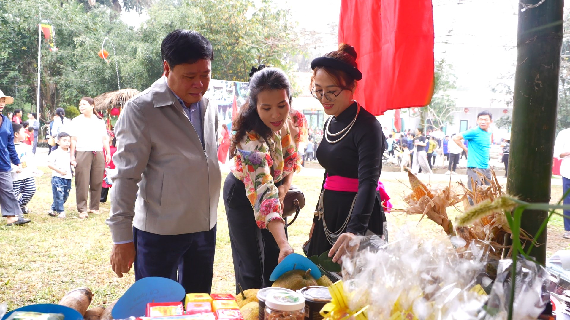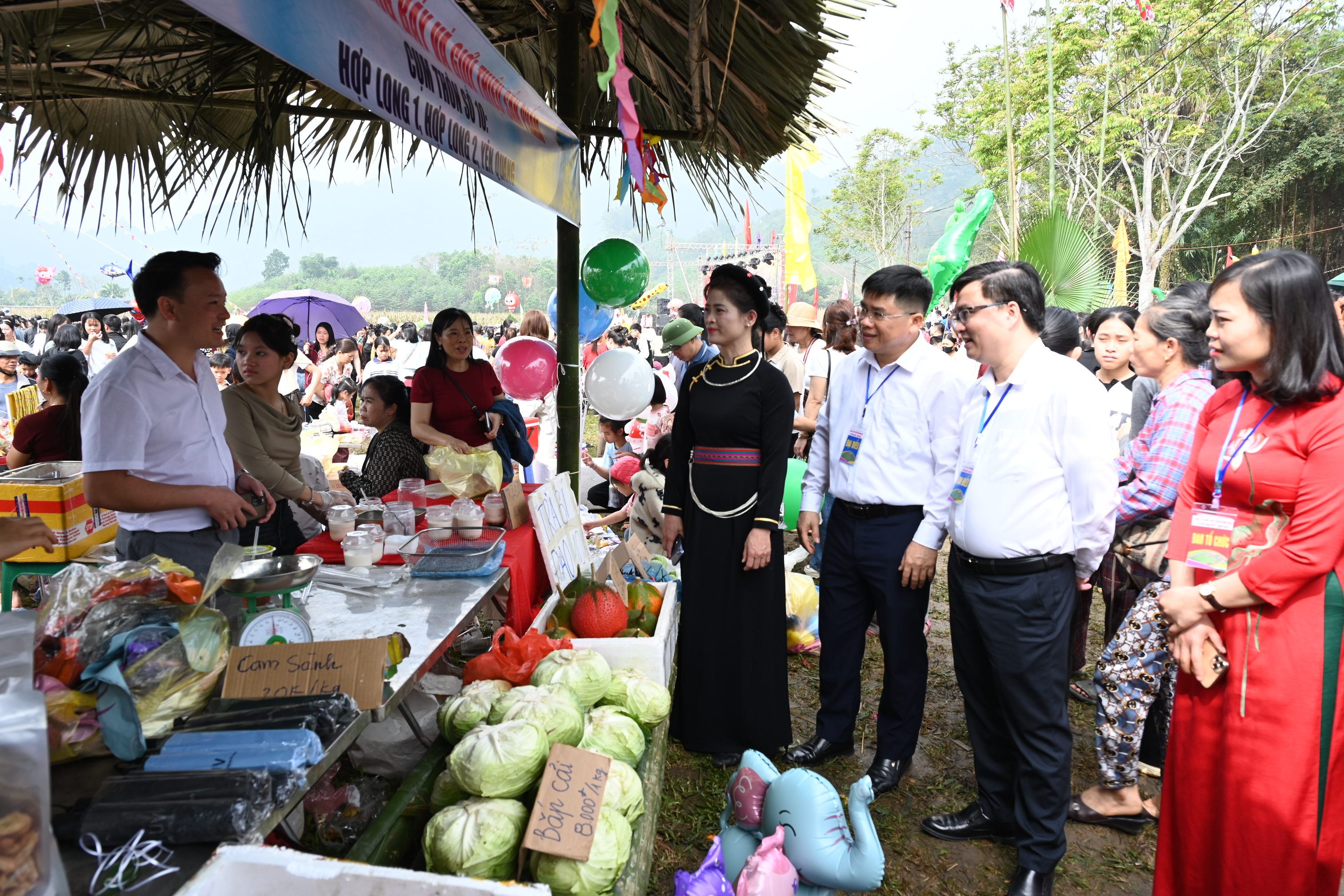 Các đại biểu tham quan các gian hàng chợ quê trong hội xuân.