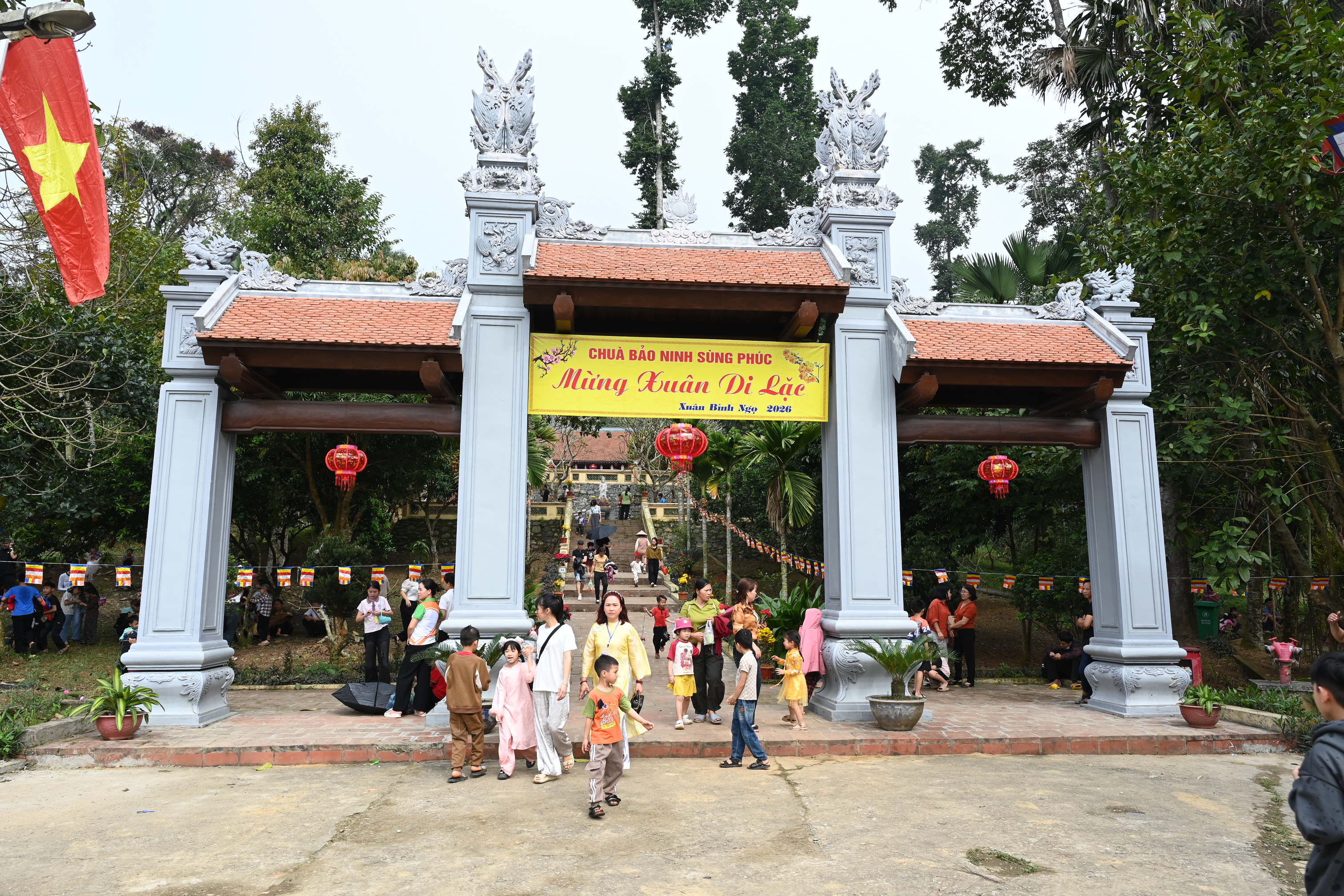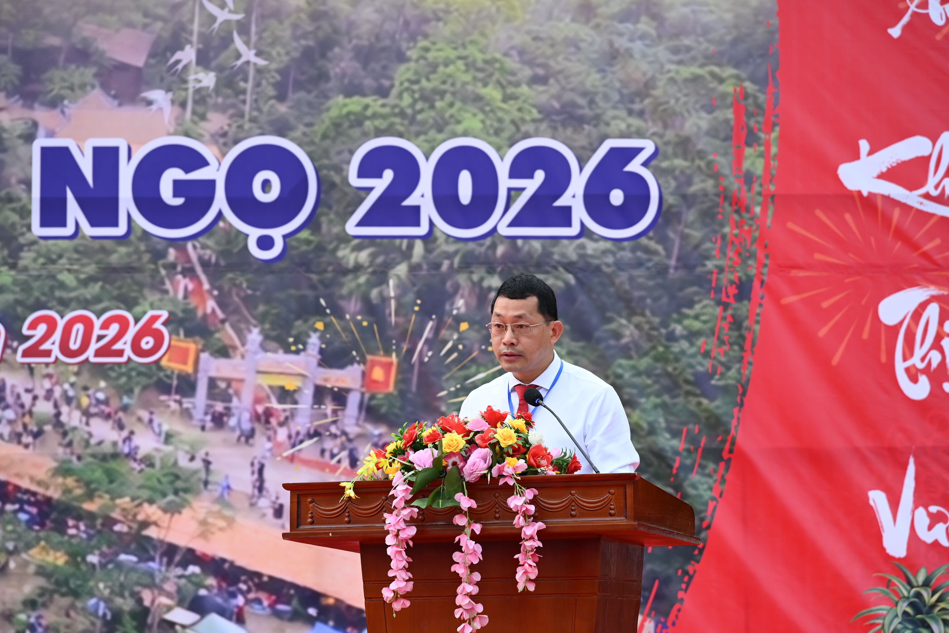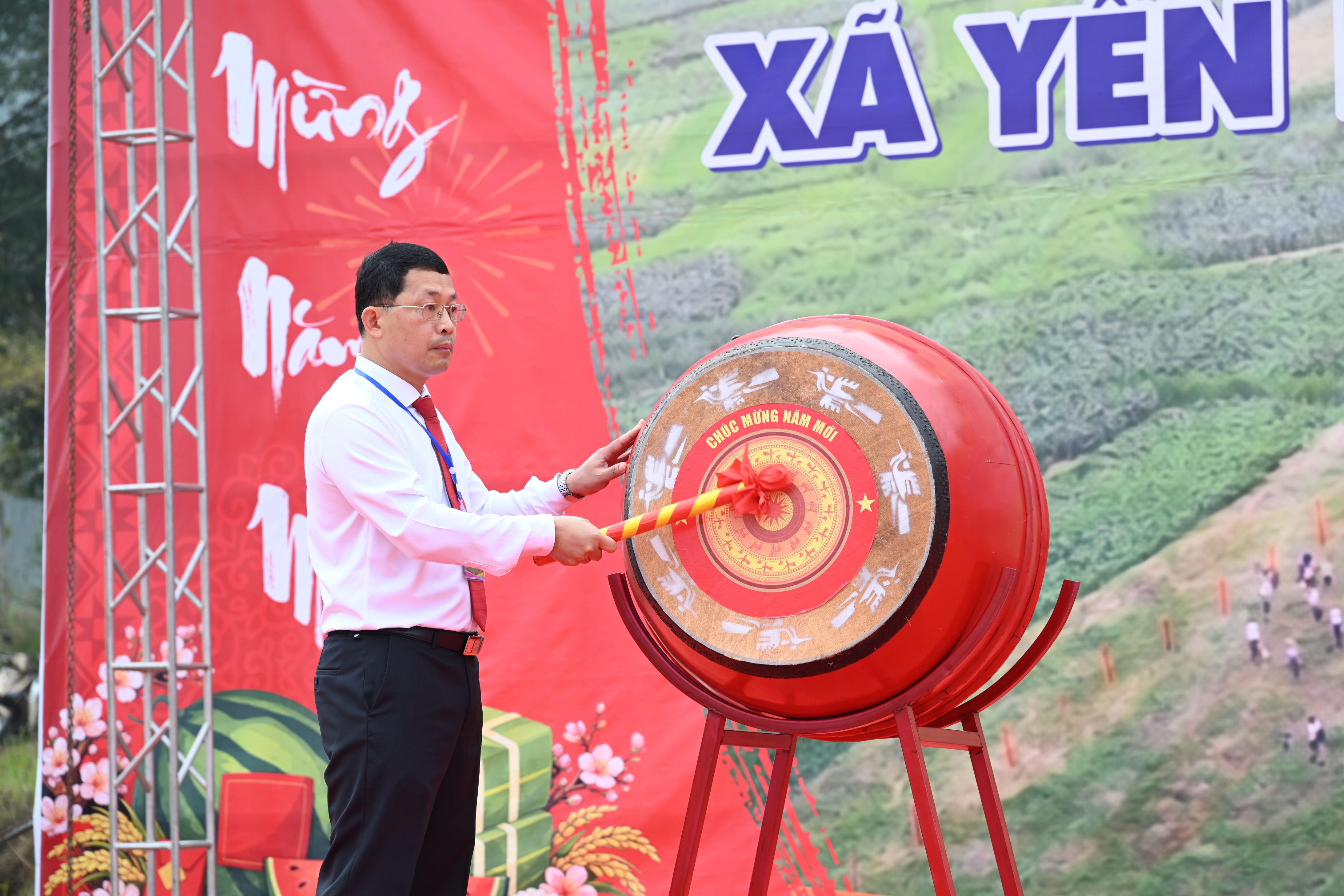 Trong không khí trang trọng, lãnh đạo xã đã gửi lời chúc mừng năm mới tới toàn thể Nhân dân và du khách, đồng thời thực hiện nghi thức đánh trống khai hội, chính thức mở màn cho chuỗi hoạt động của Hội xuân năm 2026. Tiếng trống vang lên, mở ra một mùa xuân mới với nhiều niềm tin và kỳ vọng.