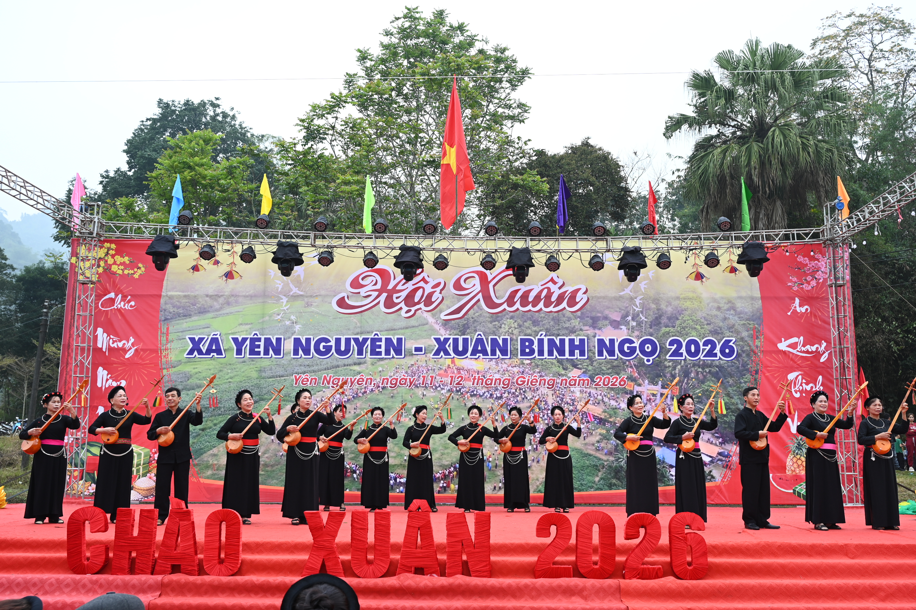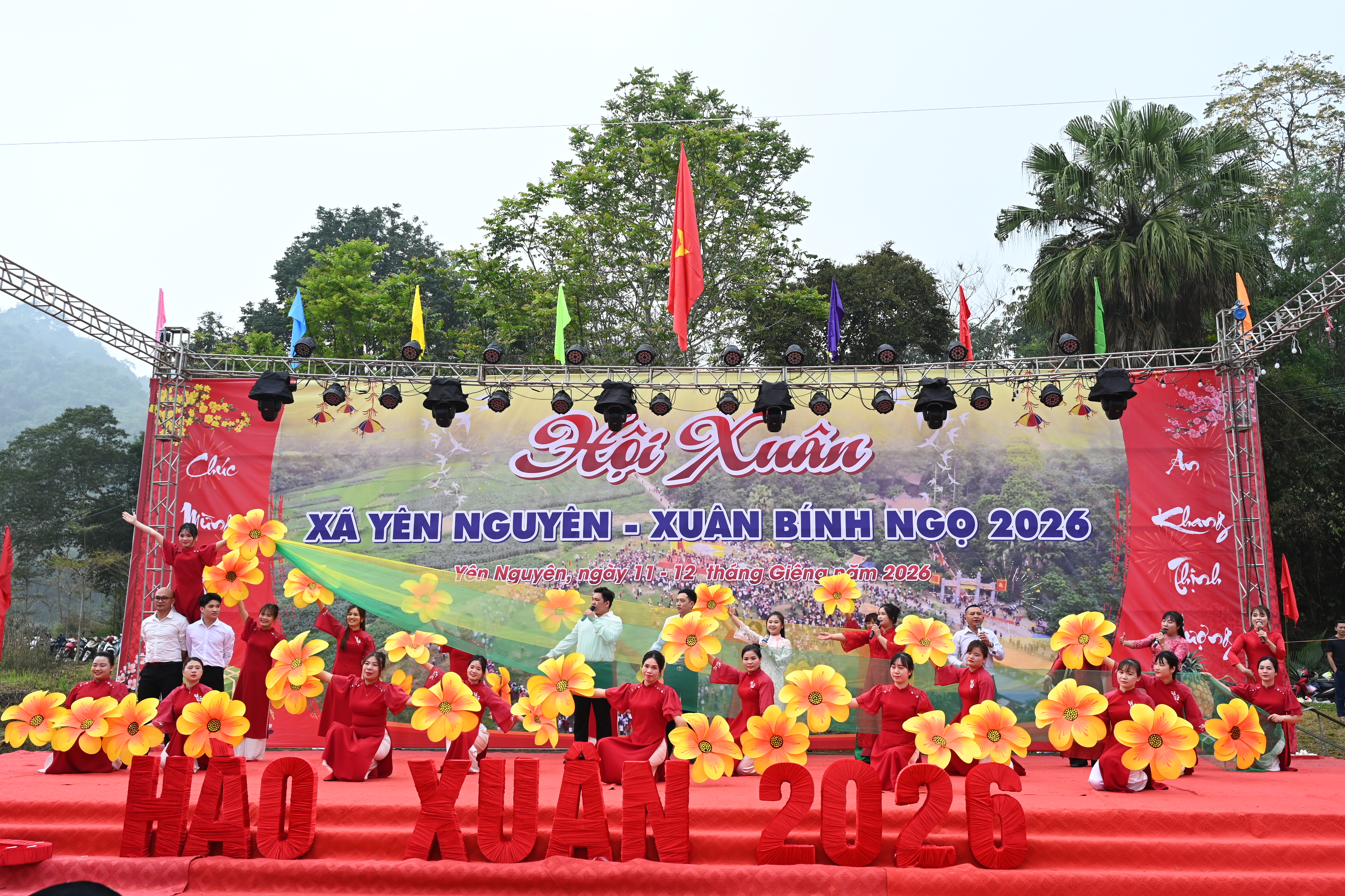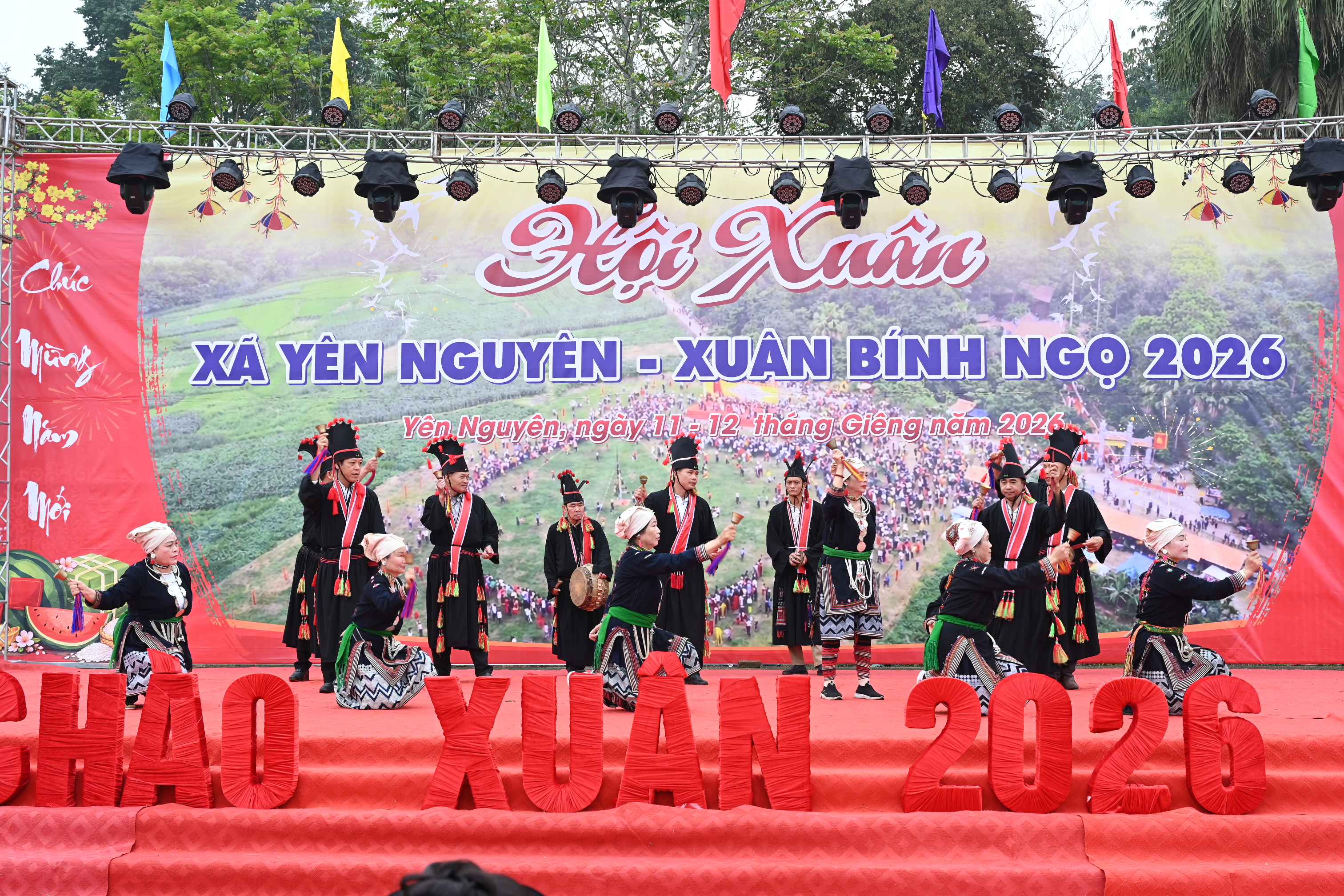 Mở đầu chương trình là các tiết mục văn nghệ đặc sắc, mang đậm bản sắc văn hoá dân tộc do các đội văn nghệ quần chúng biểu diễn. Những làn điệu dân ca, điệu múa truyền thống cùng các tiết mục ca ngợi Đảng, Bác Hồ, quê hương, đất nước đã góp phần tạo nên không khí vui tươi, phấn khởi, thể hiện niềm tin và khát vọng về một năm mới bình an, phát triển.